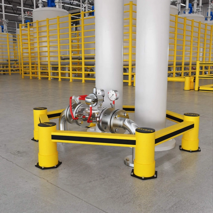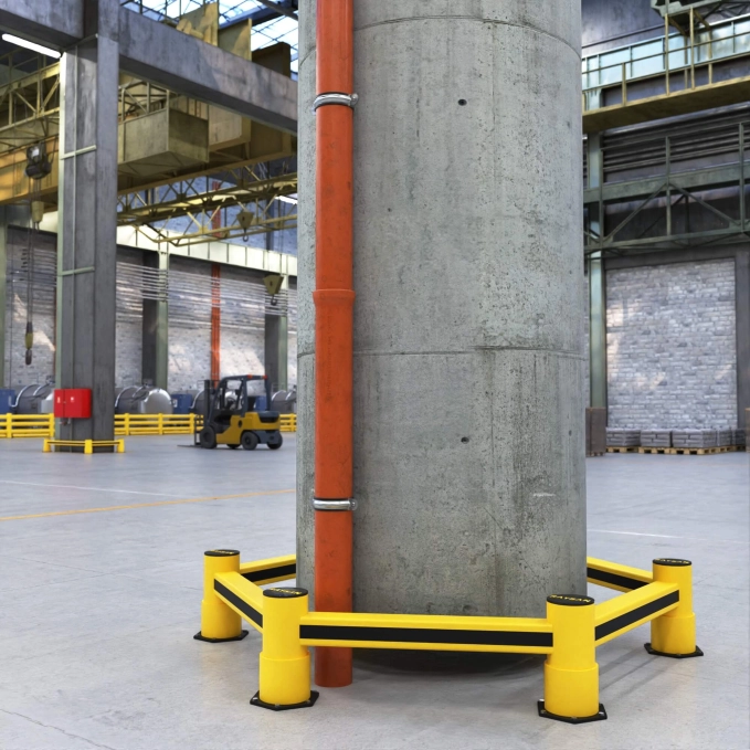 Met zijn eenvoudig te monteren structuur is het ideaal voor het voorkomen/minimaliseren van schade die kan optreden als gevolg van voertuigbotsingen dicht bij de grond, aan de ronde of veelhoekige draagkolommen in binnen- en buitenomgevingen met transport-/laad- en voertuigverkeer. Ze worden gebruikt om ze te beschermen tegen slijtage veroorzaakt door voortdurende aanrijdingen op de draagriemen, en ook om de gewenste gebieden af te bakenen.